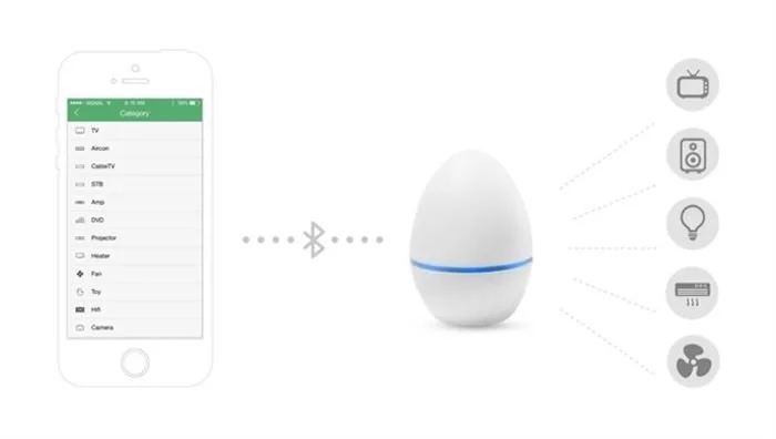Das Smart Egg ist eine universelle Fernbedienung, die jedes Infrarotgerät vom Ihrem Mobiltelefon aus steuern kann. Cloud DB, Timer, IR Learning, Indoor Automation, Automatisches lautlosstellen des Fernsehers bei Anrufeingang, Temperatureinstellung, Steuerverzögerung von nur 0.1 Sekunden, starke AES128 Verschlüsselung.