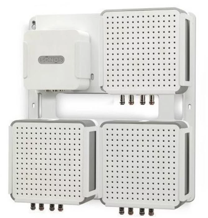 Eine praktische Möglichkeit um 4x SONOS CONNECT:AMP an die Wand zu hängen. Ideal für große SONOS Installationen. Elemente sind austauschbar und können ggfs. gegen eine BOOST, CONNECT oder APPLE TV ausgetauscht werden – diese Halterungen sind Optional zu bestellen.