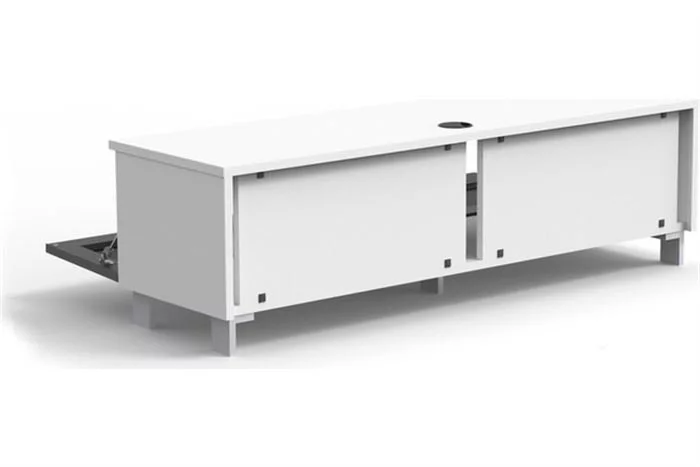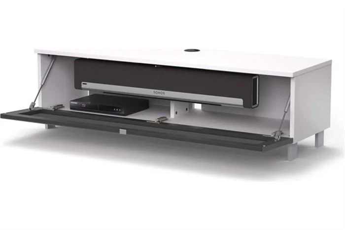 Just-Racks JRB ist ein TV-Soundbar-Lowboard mit dem Sie Ihren Flatscreen wie auch Ihre Soundbar gekonnt in Szene setzen können. Innen ist Stauraum für Ihre Media-Komponenten und gleichzeitig verschwinden alle Kabel aus dem Blickfeld. Die Front ist mit Akustikstoff belegt, so kommt der Sound völlig ungefiltert rüber und Geräte im Möbel können mit der Fernbedienung auch bei geschlossener Klappe bedient werden. Der Clou ist eine geteilt herausnehmbare Rückwand und vorbereitete Öffnungen für eine clevere Kabelführung.