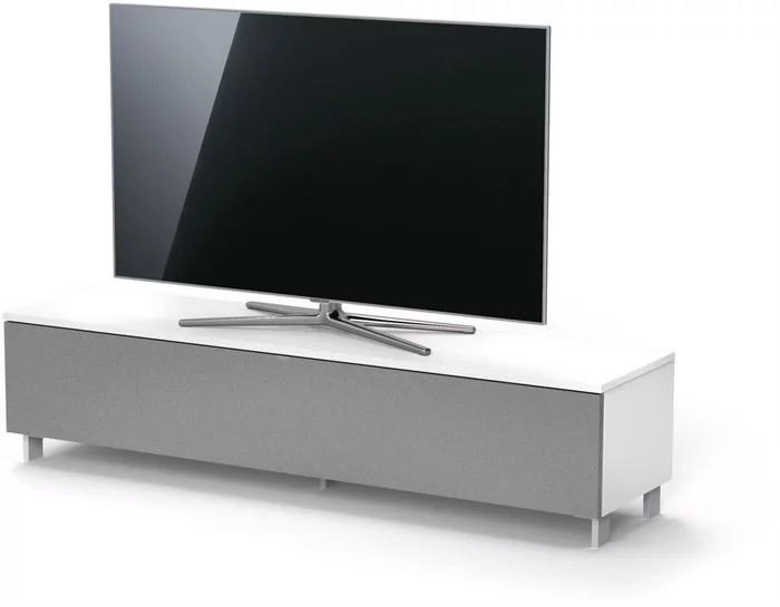 Smart TV-Möbel mit Soundbar Integration. Mit stoffbespannter Klappe.