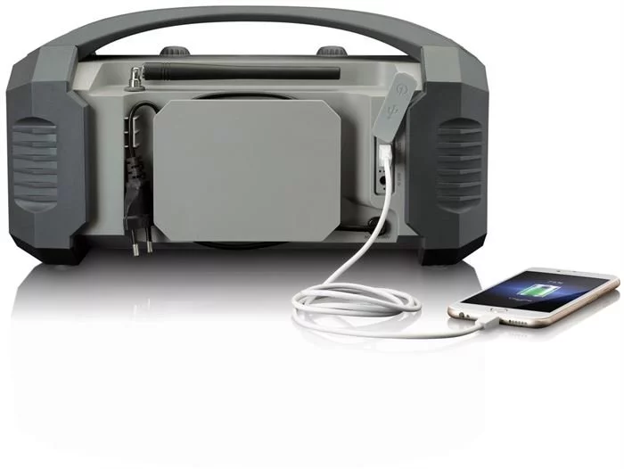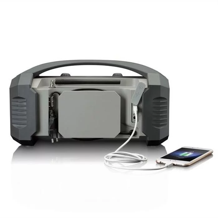 Dank seiner robusten Bauweise ist dieses Radio auch als Baustellenradio hervorragend geeignet. Neben der hohen Tonqualität ist es auf der Baustelle wichtig, dass es auch ordentlich was einstecken kann. Deshalb ist das Radio gegen Stöße geschützt, ist wasser- und staubdicht (IP54) und verfügt über eine flexible Antenne.