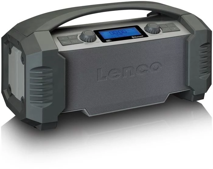 Das robuste Outdoor-Radio Lenco ODR-150GY ist ein DAB+-Radio und Bluetooth-Lautsprecher, das sowohl DAB/DAB+- als auch UKW-Frequenzen störungsfrei empfängt. Mit robuster und robuster Konstruktion und hoher Klangqualität ist dieses Radio durch den eingebauten Stossschutz auch sehr gut für den Einsatz auf der Baustelle geeignet und mit einer flexiblen Antenne wasser- und staubresistent.