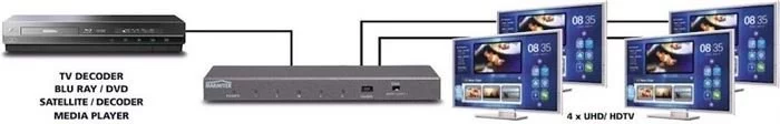 Marmitek HDMI-Verteiler Split 614 UHD, Anzahl Eingänge: 1 ×, Anzahl Ausgänge: 4 ×, Anschluss Seite A: HDMI, Anschluss Seite B: HDMI.