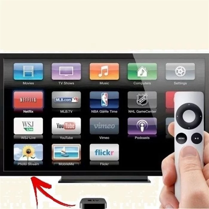 · Bedienen Sie den Apple TV oder die Android Box, der/die hinter Ihrem Fernseher befestigt ist.