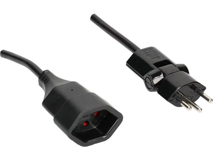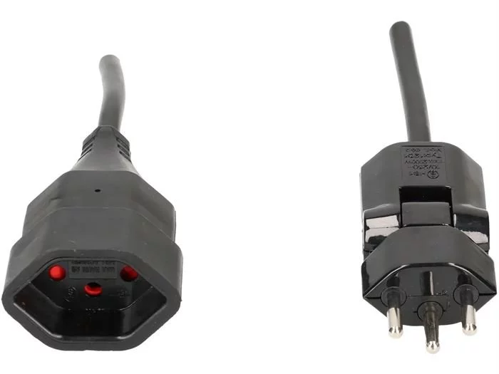 TD-Verlängerung H05VV-F3G1.0 5m schwarz / Kinderschutz / Seite 1: Stecker Typ12 Clip-Clap angespritzt / Seite 2: Kupplung Typ13 angespritzt / klappbar, drehbar