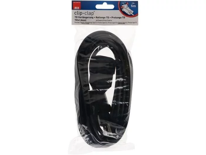 Das TD-Verlängerungskabel mit einer Länge von 5 Metern ist die optimale und flexible Lösung, Ihre Geräte schnell und bequem am gewünschten Ort anzuschliessen. Das 3-polige Kabel ist mit dem einzigartigen Clip-Clap Stecker ausgestattet. Dieser ist sehr flach, in einem Winkel von 180° klappbar und 130° drehbar. Mehr Flexibiliät in einem Produkt geht nicht. Somit kann das TD-Verlängerungskabel überall dort eingesetzt werden, wo wenig Platz vorhanden, gute Ordnung gefragt und praktisches Design erwünscht ist. Sei es in der Werkstatt, Küche, Garage oder im Büro.