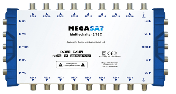 Artikeldetails für Megasat Multischalter 5/16 C (blau/ weiß)