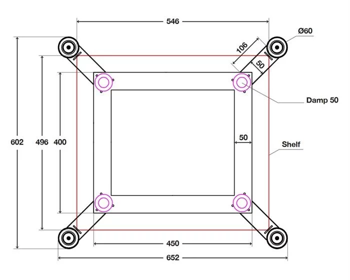 Der Spider ist der zentrale Teil der HiFi-Installation und wurde entwickelt, um elektronische Geräte wie Verstärker, Vinyl-Player oder CDs zu belichten, zu unterstützen und zu isolieren. Mit 3 Absorberelementen pro Regal verhindert es Vibrationen und stabilisiert die darauf platzierten elektronischen Geräte (bis zu 50 kg).