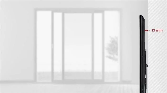 Ultra Slim 13mm Wandabstand Montage des TV-Gerätes flach an der Wand. 13mm Wandabstand. So wird das TV-Gerät fast selbst zum Teil der Wand. Automatische Ver- und Entriegelung