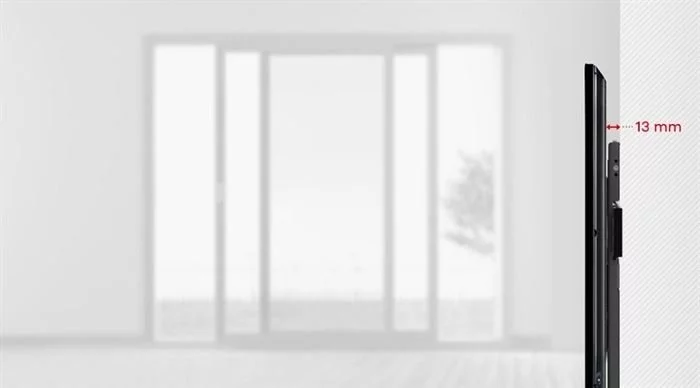 Ultra Slim 13mm Wandabstand Montage des TV-Gerätes flach an der Wand. 13mm Wandabstand. So wird das TV-Gerät fast selbst zum Teil der Wand. Ultra Slim-Serie
