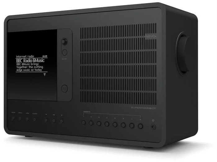 Das SuperConnect vereinigt Funktionalismus, Handwerkskunst und Technologie zu einem einzigartigen Multifunktionsradio. Das Radio eignet sich zum Empfang von DAB+/UKW und Internetradio und verfügt auch sonst über eine Vielzahl an Nutzungsmöglichkeiten. Über WLAN kann das Revo SuperConnect schnell und einfach in ein Heimnetzwerk eingebunden und mit dem Internet verbunden werden. Dank DLNA-Unterstützung lassen sich alle Musikdateien drahtlos aus dem Netzwerk über das SuperConnect abspielen. Spotify Connect erlaubt den Zugriff auf eine Musikbibliothek mit mehr als 30 Millionen Songs.