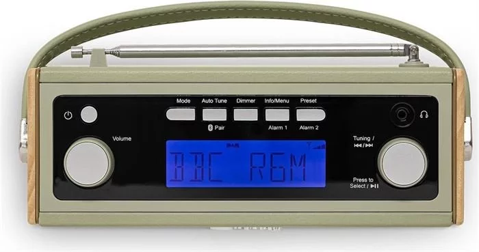 DAB+ Radio – Rambler mini (DAB+, BT) Das DAB+/FM Radio Rambler bietet einen kristallklaren Sound in einem schönen Gehäuse im Vintage-Look. Design-Elemente des legendären Favoriten der 1970er Jahre, wie das elegante Holzgehäuse und das Metallgitter, verpacken die neueste digitale Technologie. Es kann auch mit Batterien betrieben werden. Mit dem Tragegriff lässt sich das leichte Gerät überall mit hin nehmen.
