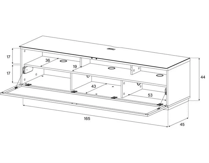 - Geschlossenes Möbel mit perforierter Frontklappe (Schwarz) zur Integration von Soundbar