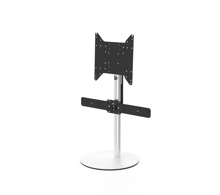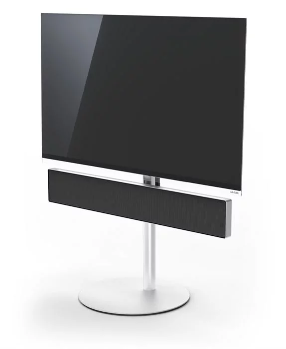 Spectral TV-Stand Circle mit drehbarer und höhenverstellbarer TV-Halterung. Stabile Sockelplatte aus Stahl mit satiniert lackierter Glasauflage. Optional mit Soundbar Adapter und Mediamount erhältlich.