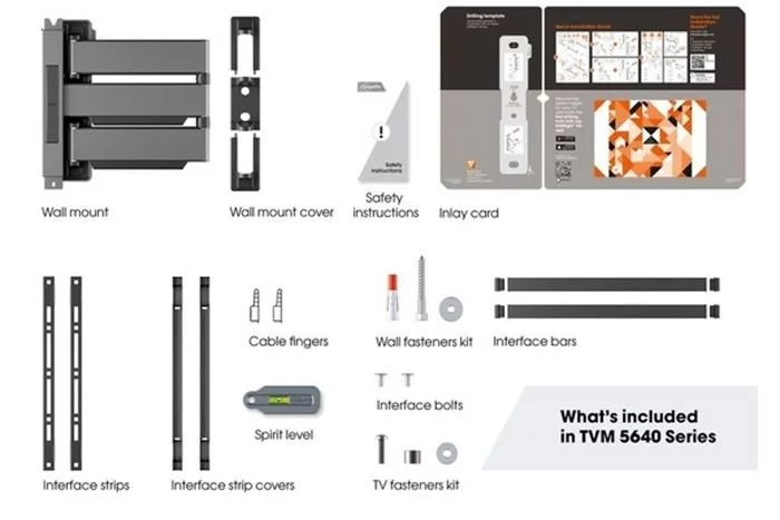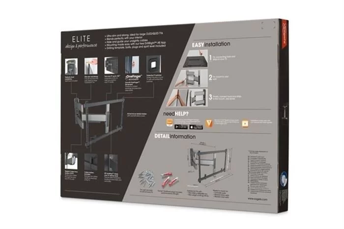 TVM5645W – Die ELITE Full-Motion+ TV-Wandhalterung ist nicht nur ultradünn, sondern auch ultrastabil und kann um bis zu 180° (abhängig von der TV-Grösse) gedreht werden. Sie ist für Bildschirme mit einer Grösse von 40 bis 77 Zoll und einem Gewicht von bis zu 45 kg geeignet. In der Ausgangsposition ist der Fernseher nur 4 cm von der Wand entfernt montiert.