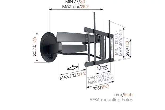 Die Wandhalterung ist für Fernseher von 40 bis 77 Zoll mit einem Maximalgewicht bis zu 35 kg geeignet. Sie können Ihren Fernseher bis zu 120° drehen, um Ihren Fernsehgenuss zu optimieren.