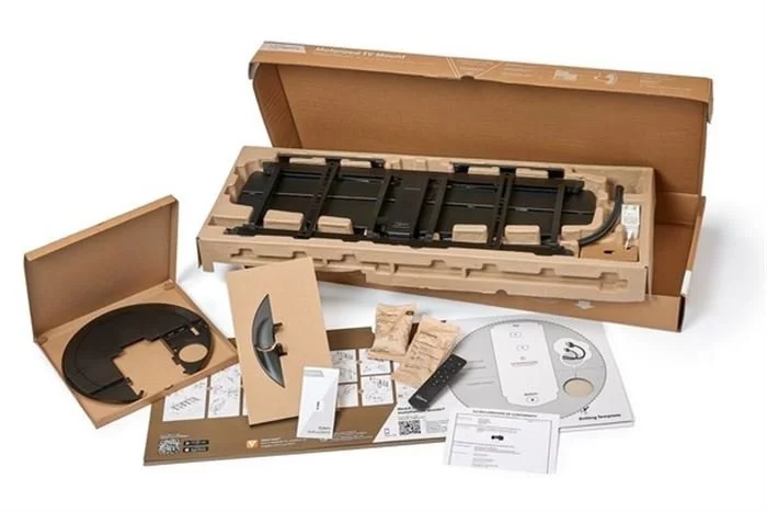Ihre Kabel und Anschlüsse ordentlich versteckt Das Cable Inlay System (CIS®) in den Tragarmen verbindet, schützt und versteckt die Kabel, die von der Wand zu Ihrem Fernseher verlaufen. Außerdem verfügt die TVM 7675 TV-Wandhalterung über integrierte Kabelhalterungen. Damit können Sie fast 4 Meter Kabel hinter Ihrem Fernseher verstauen und hinter einer Abdeckplatte ordentlich versteckt aufbewahren. Außerdem haben Sie die Möglichkeit, Kabel in der Wand zu verbergen, indem Sie sie durch einen Schlitz in der Wandplatte der TV-Wandhalterung führen. Ein HDMI-Kabel (2 Meter) ist im Lieferumfang enthalten, damit der MotionMount beim Ein- und Ausschalten des Fernsehers automatisch funktioniert. Außerdem liefern wir eine Infrarot-Fernbedienung mit Empfänger mit und Sie können die kostenlose DrillRight™-AR-App herunterladen, um das erste Bohrloch zu markieren.
